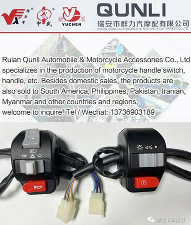 瑞安市群力汽摩配有限公司是一家專業生產摩托車閘把座總成、電動車調速開關總成系列產品的企業。公司位于中國汽摩配之都的瑞安市...。瑞安市群力汽摩配有限公司主營:摩托車手把開關\閘把座總成\把座開關、摩托車手柄支座、電動車調速開關 »