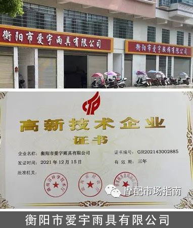 衡陽市愛宇雨具有限公司 榮獲國家高新技術企業認定,專業生產摩托車晴雨傘、電動車晴雨傘、電動車西瓜傘,銀膠、黑膠大圓頂車棚、...。衡陽市愛宇雨具有限公司主營:摩托車晴雨傘、電動車雨棚、摩托電動遮陽傘、太陽傘 »