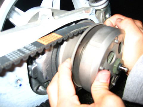 3 取下外面的固定盤后,這就是普利盤了,有條件的話,作業完畢的時候使用噴有清潔劑的軟布搽干凈,如果有油沾到上面,很容易造成皮帶打滑。