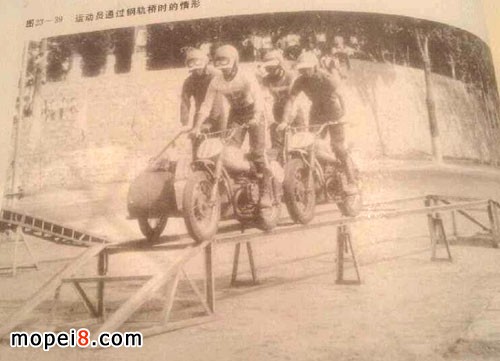 在條件許可的情況下,也可以在橋兩側(cè)堆放黃土,修成斜坡。因?yàn)榫婉{駛技術(shù)來講,并不比飛輪換胎難;但是,飛輪換胎技術(shù)不錯的運(yùn)動員,常常都怵獨(dú)木橋,不少人初練時(shí)失誤不斷,其中一個(gè)主要原因是思想顧慮大,怕摔跤。修成斜坡之后,失誤了可以處理而不致造成車輛傾覆。實(shí)踐證明,這樣做的結(jié)果能使成功率明顯提高。技術(shù)熟練以后再把土清除,既保證了安全,又縮短了訓(xùn)練時(shí)間。