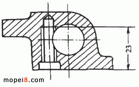 2. 左半曲軸箱上的車速表軟軸固定螺孔,原來也是個(gè)通孔,油可通過此孔外滲,現(xiàn)也改為不通孔,起到了防漏的效果。具體結(jié)構(gòu)見圖。
