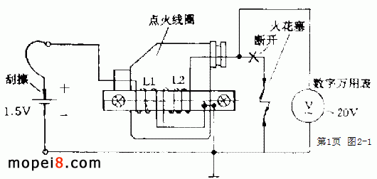 下面介紹兩種對點火線圈局部或匝間短路故障的簡易判斷方法。 1. 找一臺型號為 DT-830HR 一類的數字萬用表和一節 1.5V 的干電池,就能方便地測出點火線圈次級是否有短路現象。萬用表選用交流 20V 擋,在圖 2-53 電路中,只要用點火線圈的低壓輸入端刮擦干電池正極,這時萬用表顯示的交流電壓瞬時值達到 3 ~ 12V 時,說明點火線圈次級沒有短路現象,可以放心地去用。筆者為此曾專門做過測試,點火線圈次級哪怕只有一匝短路,無論干電池在初級回路怎么刮擦,數字萬用表也沒有示數。http://m.realhards.com/