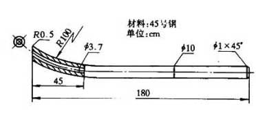 ( 2 )變擋踏板再由后向下變動(dòng),由四擋依次排列到空擋,看其 2 所示位置的尺寸是否保持在 5 ~ 6mm 的范圍內(nèi)。無(wú)論是 1 所示位置(掛擋)還是 2 所示位置(退擋),達(dá)不到該尺寸要求時(shí),須使用一專用工具進(jìn)行調(diào)整(扳動(dòng))變擋軸彈簧與變擋搖臂限位柱之間的間隙。專用工具如圖所示。