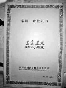 5月20日,黃經理將相關資料發了過來。該公司的燃油助力車出廠價在1600-2700元,合格證上標注的品牌為“榮富建設”(合格證封面顯示品牌為“榮富建設”,內文標注的車輛品牌為“南爵”),持有者為江蘇新禧南爵機車有限公司。