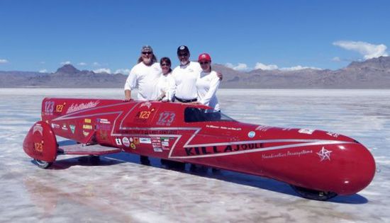 Killajoule 搭載的電動電池長達 19 英尺,動力主要來自科羅拉多的風力以及運行時的混合生化柴油發電機。建造這輛車的主要目的,就是要改變環保車輛只能緩慢無趣的概念。