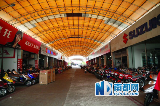 “去年50塊一方的店面租金,今年又漲了。”老范嘆了口氣。離他在摩托城內店鋪不及50米的第二個拐彎路口,兩家主銷國內摩托的店已在一個月前提前“歇菜”,店主直接卷鋪蓋回家。“搵食不易。”
