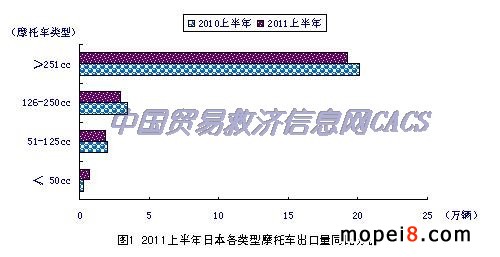 2011年上半年,日本各類別(排氣量)摩托車出口量分析