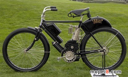 105年前僅生產(chǎn)1698輛這種非常罕見的摩托車,它目前的“未修復”狀態(tài)意味著這件古董將在拍賣會上拍出5萬英鎊(7.83萬美元)的高價。該車只有區(qū)區(qū)2.25馬力,而且只有一個氣缸,最高時速僅為30英里(48.28公里),因此買家確實不必因為它的大馬力說明而競拍。這輛摩托車屬于杜龐特家族,他們收購了制造該款摩托車的“印度摩托車制造公司”,這輛車70年代最后一次被人騎過。