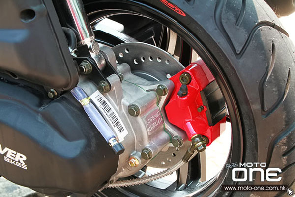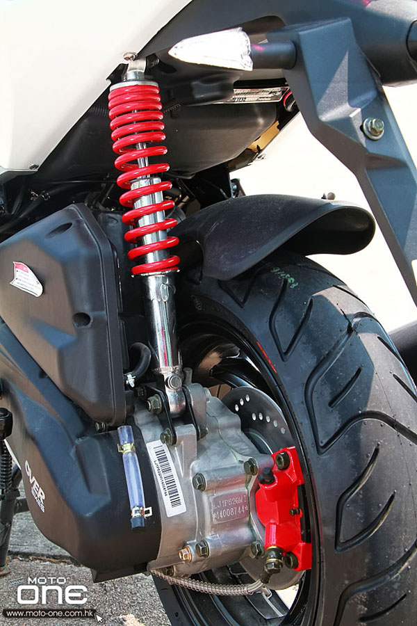 尾是單筒尾避震、單活塞煞車卡鉗及通風煞車碟。