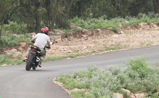 在山區(qū)和市區(qū)的騎行中,Z 250在操控表現(xiàn)上讓人很難找出突出的優(yōu)勢(shì)——偏硬的座位和緊湊的駕姿讓舒適度非常一般,遠(yuǎn)遠(yuǎn)落后于常規(guī)街車;為營(yíng)造舒適而重新調(diào)校的懸掛系統(tǒng)又讓運(yùn)動(dòng)駕馭(尤其是高速?gòu)澋溃╇y以體會(huì)到酣暢淋漓的盡興操控,倒是清晰的擋位讓人不能不贊一個(gè)。