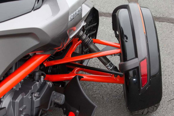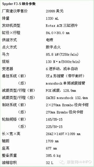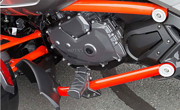 重新設(shè)計的車身,通過暴露Rotax發(fā)動機的一部分,淡化部分人對其“帶輪子的雪地摩托”的認知,新的鋼管車架和擺臂動若野獸,靜若工藝品。全新的設(shè)計不僅僅提升了F3的視覺吸引力,還得到了巡航艦愛好者的親睞。