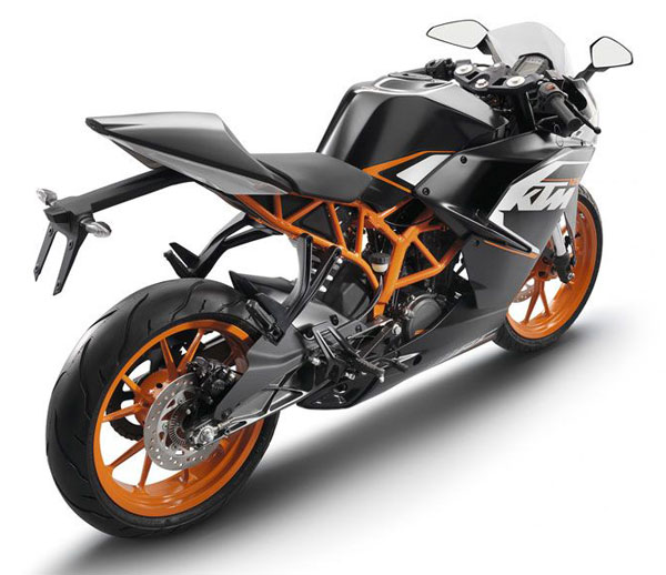 動力方面,RC125仍然采用排量為125c.c.的單缸四沖程水冷發動機,最大馬力15匹(9500轉),峰值扭矩為12牛米(8000轉)。由于其賽車化的定位,因此標配轉向阻尼器,而且儀表采用全數字表盤,各項數值一應俱全、清晰易讀,延續了KTM厚道的特點。另外,減震系統仍然采用WP,且后避震預載可調,剎車系統則標配雙通道的ABS。