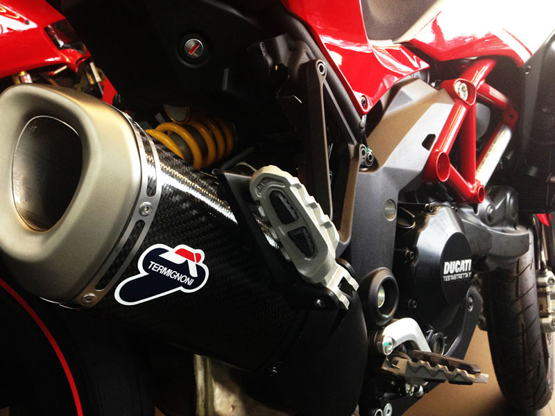 杜卡迪 Multistrada 1200 S Pikes Peak 特別版摩托車有嶄新的大紅色,配以受杜卡迪 Corse 風(fēng)格啟發(fā)的白色條紋、各種碳(纖維)部件以及 Termignoni 碳纖排氣管。
