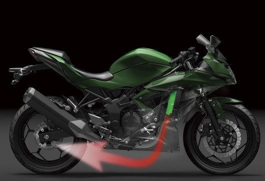 忍者250SL運用了一個全新的鋼管編織車架。目的是為了實現(xiàn)車輛“窄、重量輕、結(jié)構(gòu)緊湊”的目標,框架結(jié)構(gòu)的車架有助于減輕車體重量,增加騎士騎行的操控性。同時車身強度的增加,在彎道行駛時能夠擁有更好的彎道體驗。