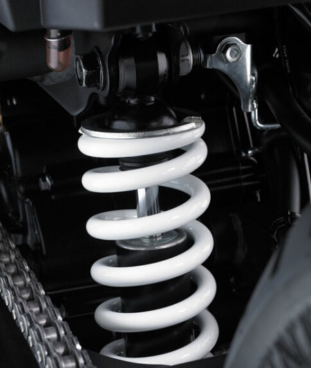 Uni-Trak的后懸掛能夠充分的吸收來自地面的震動,同時也增加了后輪對地面的附著力,促進車輛的運動操控。5個可調(diào)檔段,允許車手調(diào)整后車身高度,以及設立車輛載人或者背負行李的狀態(tài)。