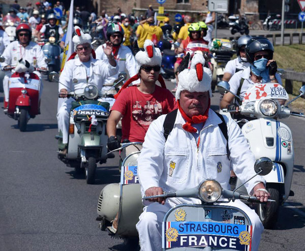 6月14日,2014年世界VESPA摩托車日在意大利倫巴第大區曼托瓦市舉行,來自世界各地的VESPA摩托車愛好者相聚這座意大利北部小城共同騎行。