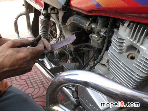 本想去把自己的車的化油器清洗一下.排上PP讓大家看看.可董師傅說沒有什么問題最好不要去拆.我的車跑了8500公里了.現在天熱.一點就著.