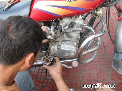 汽油也沒有問題.那問題就出在化油器上了.董師傅說只有在試發動機斷火才把油門哄大.不擰大油門不好判斷.至于有的修理工.不論什么情況.不管你是新車還是舊車.一律油門到底制造噪音.真是摩托修理行業的一大惡習.