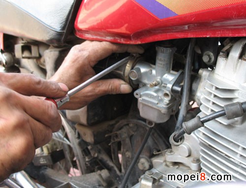 本想去把自己的車的化油器清洗一下.排上PP讓大家看看.可董師傅說沒有什么問題最好不要去拆.我的車跑了8500公里了.現(xiàn)在天熱.一點就著.
