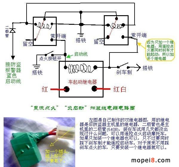 “負啟動”、“直流點火”加裝繼電器電路圖