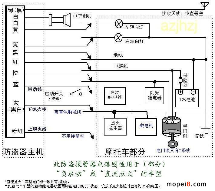 摩托車防盜器電路圖、摩托車防盜器接線圖