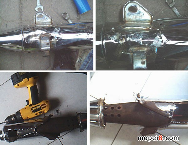 EN消聲器結(jié)構(gòu)圖-解剖圖日期:2011-03-20 點擊:10141 查看原圖 全部展開![]() ![]() ![]() 我的消聲器使用4年半了,注過4次油吧,全是從滴水孔和尾口注入的,通過解剖發(fā)現(xiàn):這兩個腔內(nèi)銹蝕嚴重,全是片狀銹蝕物,金屬管壁變薄嚴重,排氣前端沒注過機油,沒有此現(xiàn)象。我感覺消聲器注油是不是適得其反?