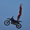 開幕式上,精彩絕倫的國際摩托車頂級極限表演賽首次亮相內蒙古草原。炫目的車技使現場觀眾不斷爆發出歡呼聲、喝彩聲。