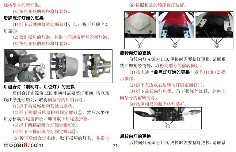 錢江黃龍600電噴摩托車燈泡的更換