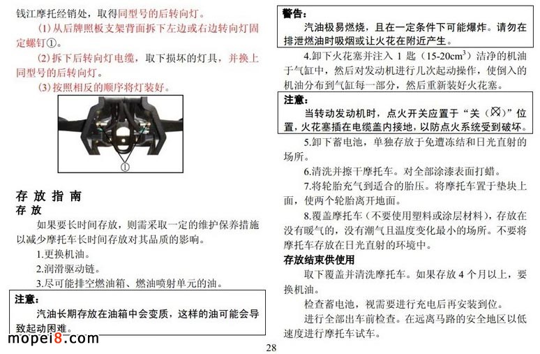 錢江黃龍600電噴摩托車說明書、技術(shù)參數(shù)、電路圖、輪胎日期:2013-03-22 點(diǎn)擊:7471 查看原圖 全部展開![]() ![]() ![]() 錢江黃龍600電噴摩托車存放保存指南