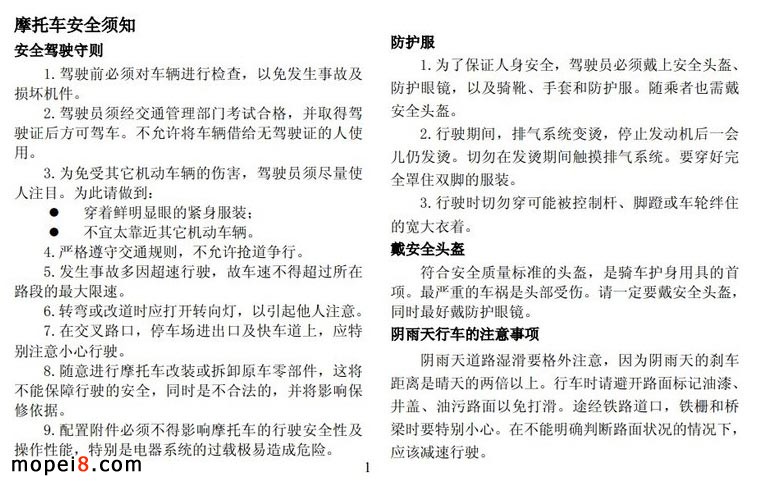 駕駛摩托車(chē)是最令人振奮的運(yùn)動(dòng)項(xiàng)目之一,在您駕駛摩托車(chē)之前,應(yīng)當(dāng)充分熟悉使用維護(hù)說(shuō)明書(shū)中提出的各項(xiàng)規(guī)定和要求,并遵照?qǐng)?zhí)行。