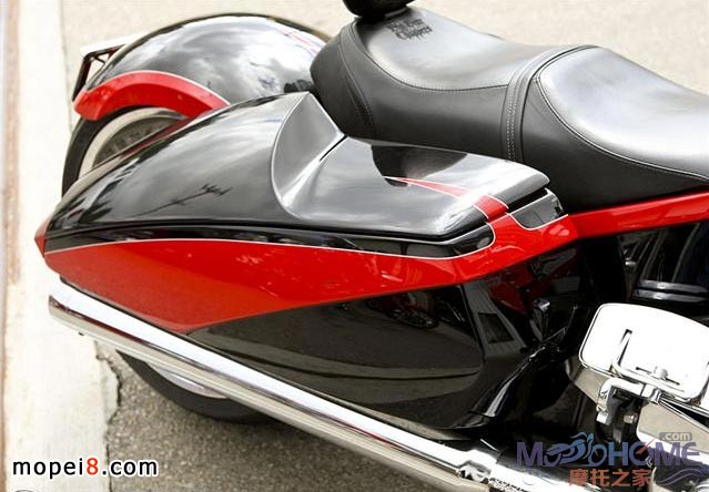 BigBearChoppers大熊GTX-F的掛箱又深又狹長,之所以選擇玻璃纖維是因為這種材料修補起來比較容易。