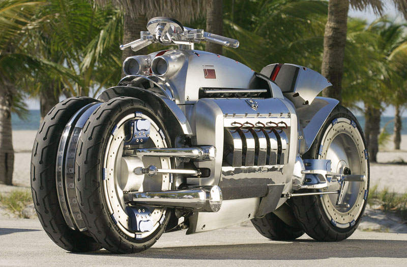 全球最快的摩托車“戰斧”(Tomahawk)將告訴你真實世界中人類騎著摩托車可以到達的最高時速。“戰斧”最高時速可達676公里,馬赫數在0.55上下。盡管會受氣壓氣溫影響,但人們完全有理由對它的巔峰時速表示膜拜。不過,當到達速度巔峰,從機車上摔落將不再成為意外。“戰斧”搭載道奇蝰蛇500馬力的v10引擎為其提供強悍動力,異于普通摩托前后單輪的四輪設計也保證了它行駛時的安定性。