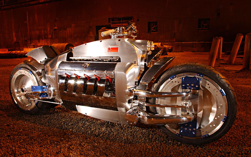 全球最快的摩托車“戰斧”(Tomahawk)將告訴你真實世界中人類騎著摩托車可以到達的最高時速。“戰斧”最高時速可達676公里,馬赫數在0.55上下。盡管會受氣壓氣溫影響,但人們完全有理由對它的巔峰時速表示膜拜。不過,當到達速度巔峰,從機車上摔落將不再成為意外。“戰斧”搭載道奇蝰蛇500馬力的v10引擎為其提供強悍動力,異于普通摩托前后單輪的四輪設計也保證了它行駛時的安定性。