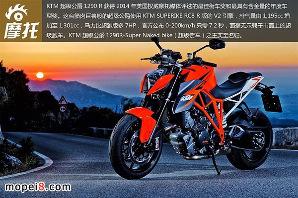 KTM的這臺超級公爵1290R獲得了2014年美國權(quán)威摩托車媒體評選的最佳街車獎,以及最具含金量年度車型獎。這臺巨獸使用了一臺KTM SUPERIKE RC8 R版的V2引擎,排氣量達(dá)到了1301cc。官方公布的0-200公里加速只需7.2秒,這足以秒殺大街上的絕大多數(shù)跑車了。