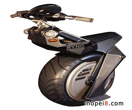 Ryno Motors近期推出的一款電動獨輪摩托車,車身配備了自動平衡系統,電子控制和監控系統。電池電量檢測系統可以在電池電量剩余25%黃燈提醒,剩余5%時紅燈警告。設計優良的防抱死剎車系統可以避免駕駛者在急剎車時摔倒