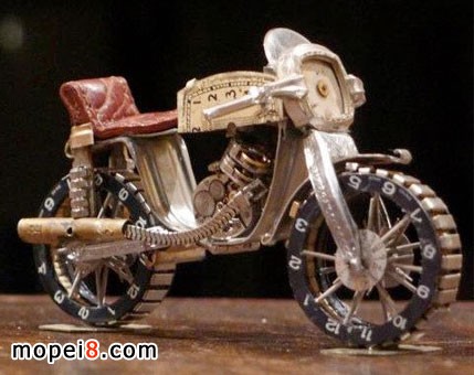 加拿大藝術家 Dan Tanenbaum 將回收的舊鐘表零件進行重新組合,變成一臺臺拉風的摩托車模型。