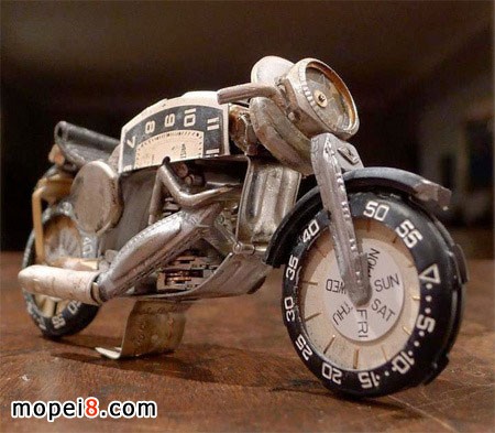 加拿大藝術家 Dan Tanenbaum 將回收的舊鐘表零件進行重新組合,變成一臺臺拉風的摩托車模型。