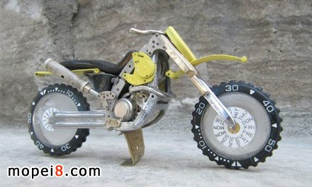 加拿大藝術家 Dan Tanenbaum 將回收的舊鐘表零件進行重新組合,變成一臺臺拉風的摩托車模型。