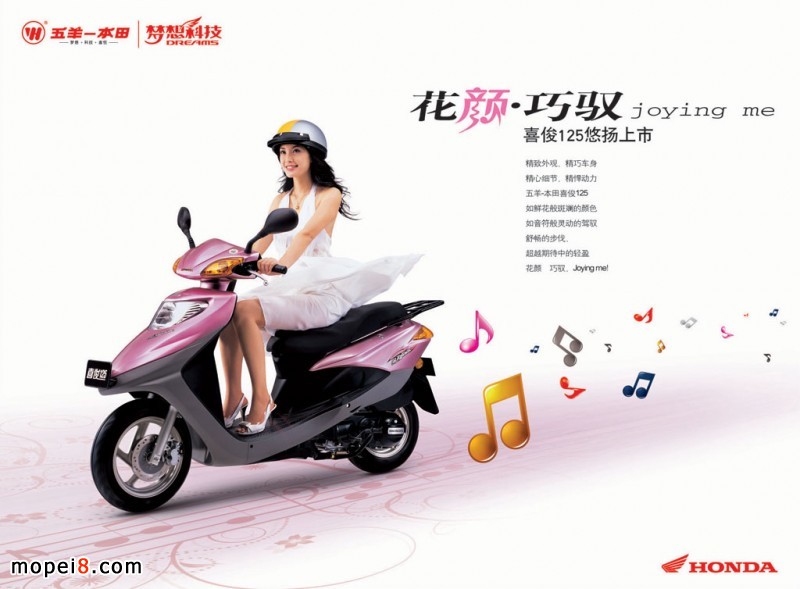 公司擁有騎式車、踏板車、彎梁車等二十七款車型,一百多個(gè)品種。這些產(chǎn)品憑借質(zhì)量?jī)?yōu)異、款式新穎、加速性能優(yōu)越和耗油量小而深受市場(chǎng)歡迎。從本田公司引進(jìn)開(kāi)發(fā)的WY125暢銷大江南北,SCR100踏板車引發(fā)了中國(guó)市場(chǎng)的踏板車革命,SPACY100成功返銷日本,2006年國(guó)內(nèi)第一款集歐Ⅲ排放標(biāo)準(zhǔn)、電噴、水冷于一身的佳御110問(wèn)世, 2007年LEAD110順利下線并進(jìn)軍日本、歐洲等高端市場(chǎng),行業(yè)關(guān)注的目光再次投向五羊—本田。2009年,此車型成為國(guó)內(nèi)第一款取得國(guó)家全項(xiàng)許可(公告、環(huán)保以及3C)的國(guó)III車型。公司的銷售服務(wù)網(wǎng)點(diǎn)遍布全國(guó)各地,有各形式的銷售店、服務(wù)店3000多家,并建立了多種營(yíng)銷模式;在國(guó)際市場(chǎng),五羊-本田摩托車已出口遍及亞洲、歐洲、美洲、非洲等100多個(gè)國(guó)家和地區(qū)。