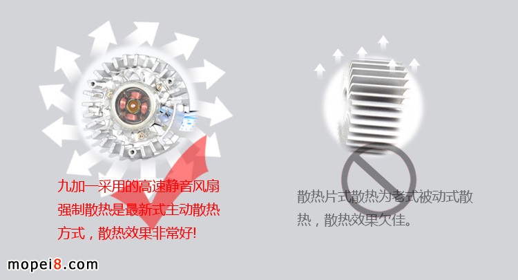 01:九加一大燈M3H亮度敢于挑戰(zhàn)市場(chǎng)上任何一款摩托車(chē)LED大燈
