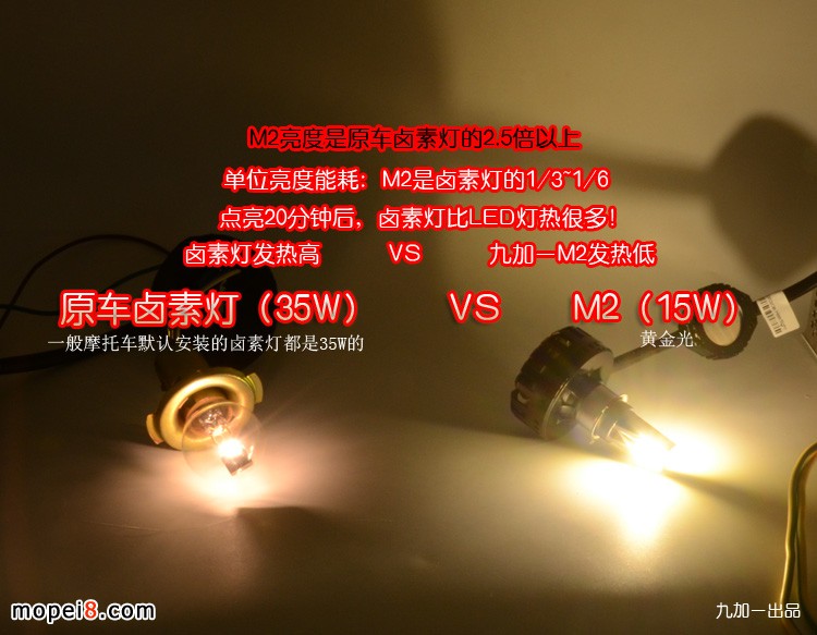 01:某牌子LED大燈與九加一LED大燈M2對比