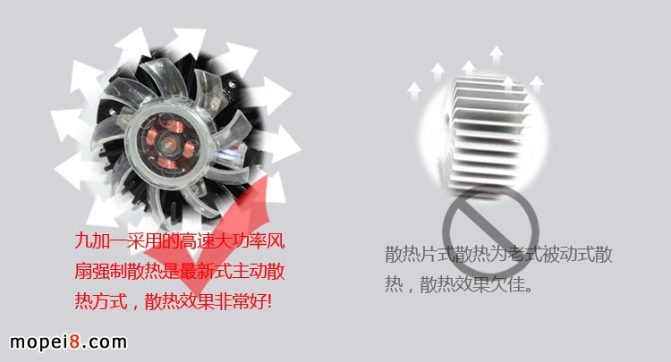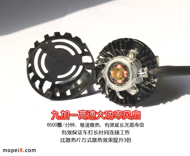 3.28孔散熱器+高速大功率風扇強制散熱,6500圈/分鐘,極速散熱,有效延長光源壽命,使光衰非常非常低。