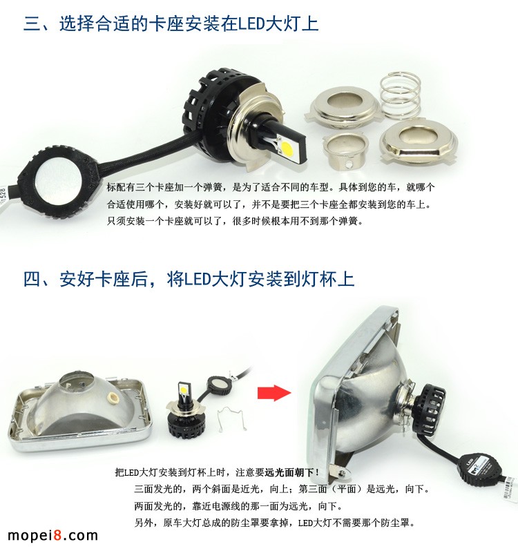 (摩托車大燈改裝看似簡單,其實是個技術活!安裝上去容易,要改裝出好效果其實并不容易。因此,為達最好效果,建議拿到專業摩托車改裝店進行改裝;經改裝店師傅改裝的效果會更好。不要自己裝!!
