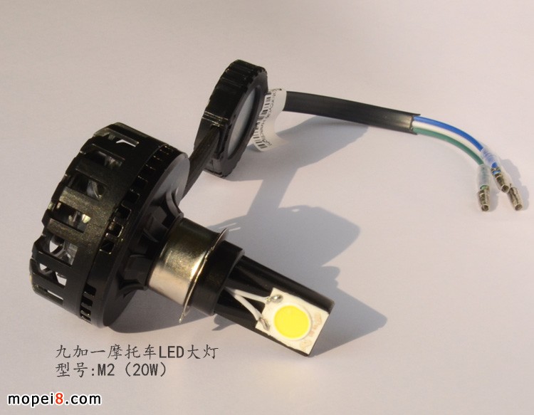 九加一摩托車大燈M2是兩面發光的,近光時一面亮,遠光時兩面亮,這個燈亮度可以的了,是市面上兩面發光的摩托車LED大燈中最亮的,但沒有我們三面發光的那么亮。這個燈普通用途是完全足夠的了!