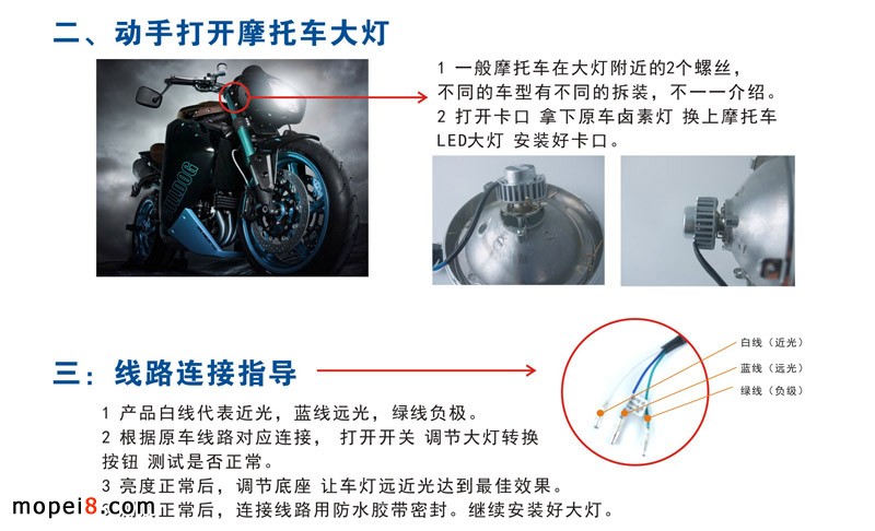 (本車燈可以自行無(wú)損安裝,但為達(dá)最好效果,建議拿到專業(yè)的摩托車燈改