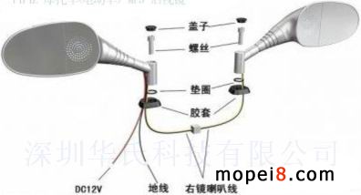 摩托車音響電動車mp3反光鏡倒車鏡音響